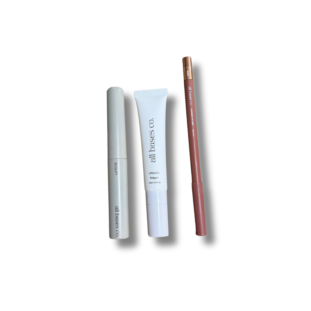 Get everything you need for a flawless, long lasting look with the Locked In Bundle. This trio combines our best selling brow gel to keep your arches perfectly sculpted all day, our long wear liner for bold definition that won't budge, and the perfect lipgloss that delivers to finish your look.